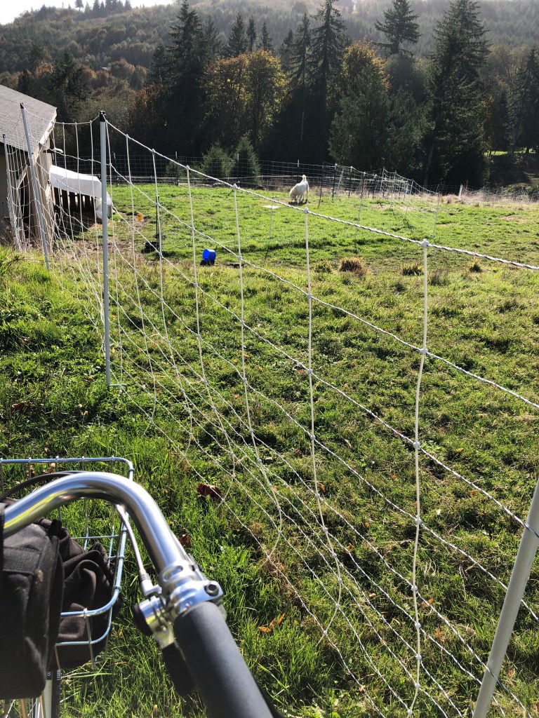 But now I’m in the country in the Pacific Northwest. This ride (Oct 30) was a trip to check out fences around paths (really just mowed grass) our hilly farm with a Counter Culture Slow Motion Decaf brewing in my thermos. I checked out after 2 miles exactly and had to take a couple days off the bike. Still a nice time and quicker to do the chore on wheels than by foot.